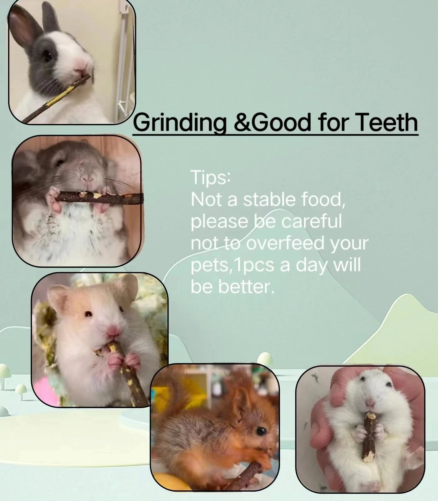 Introducing our Apple Sticks, perfect for rabbits and small pets like chinchillas, guinea pigs, hamsters, and gerbils. These natural chew toys and treats are not only delicious but also promote dental health and keep your furry friends entertained. Treat them to the best with our wholesome pet products!