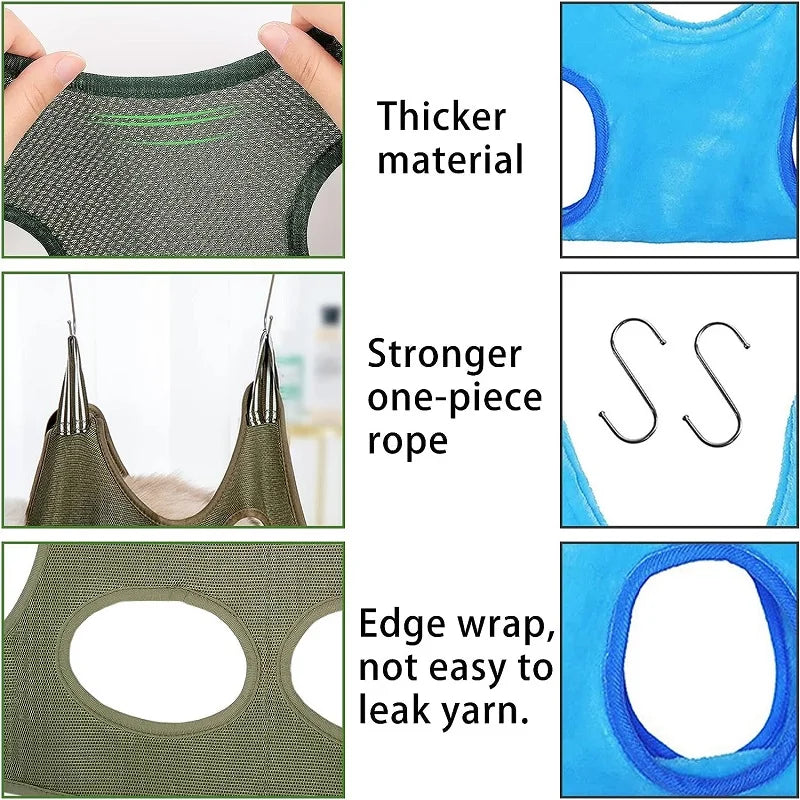 Introducing the ultimate solution for stress-free nail trimming and bathing sessions with your feline friend - our cat grooming restraint bag! Designed with both comfort and functionality in mind, this bag provides a safe and secure way to handle your cat during grooming activities. The durable yet gentle material ensures that your cat feels relaxed and secure, reducing their anxiety and making the process more enjoyable for both of you. The bag's adjustable straps allow for a snug and customized fit, ensuring that your cat remains in place without any discomfort. Whether it's nail trimming or bathing, our grooming restraint bag provides the perfect solution to keep your cat calm and cooperative. Say goodbye to scratches and struggling, and say hello to hassle-free grooming with our cat grooming restraint bag!