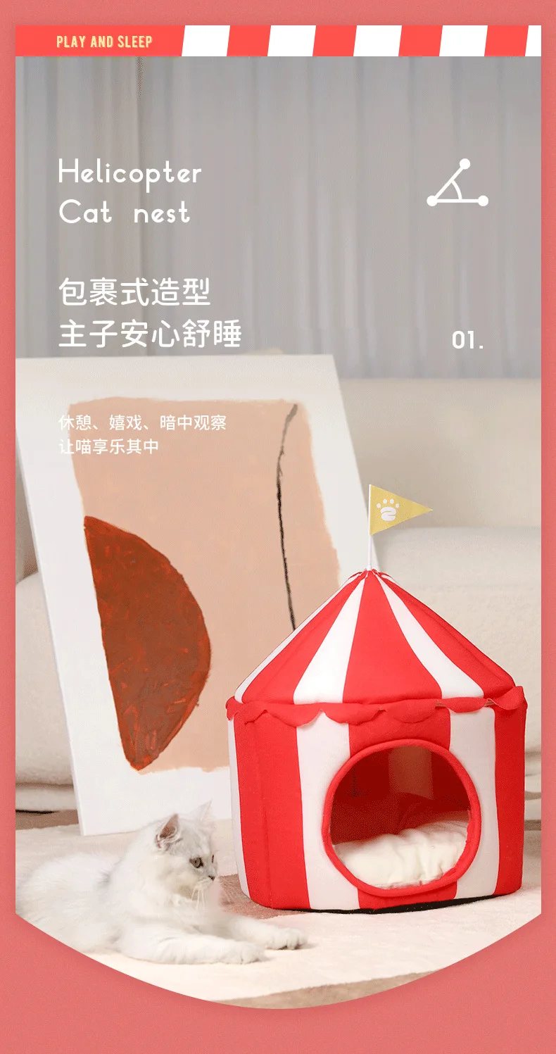 Cat House With Detachable Roof Circus Tent Pet House Washable Cat Nest