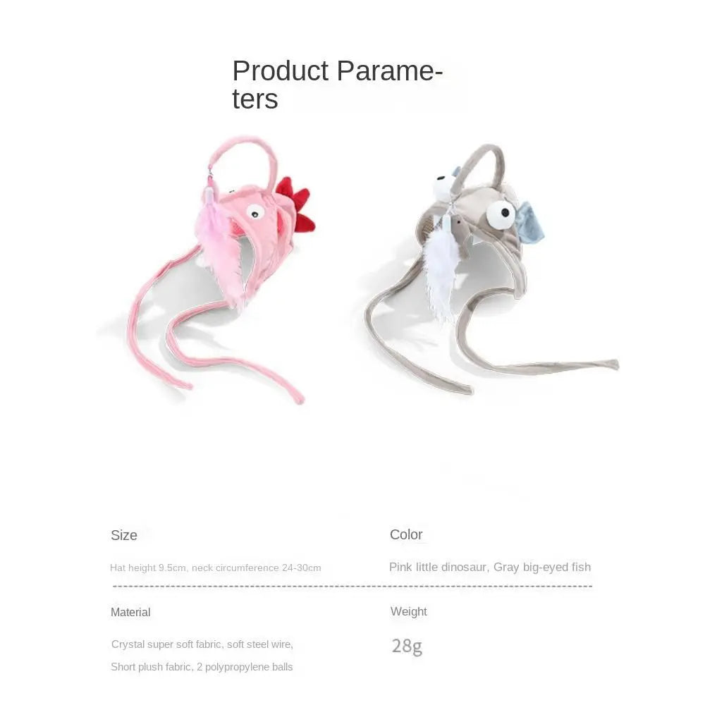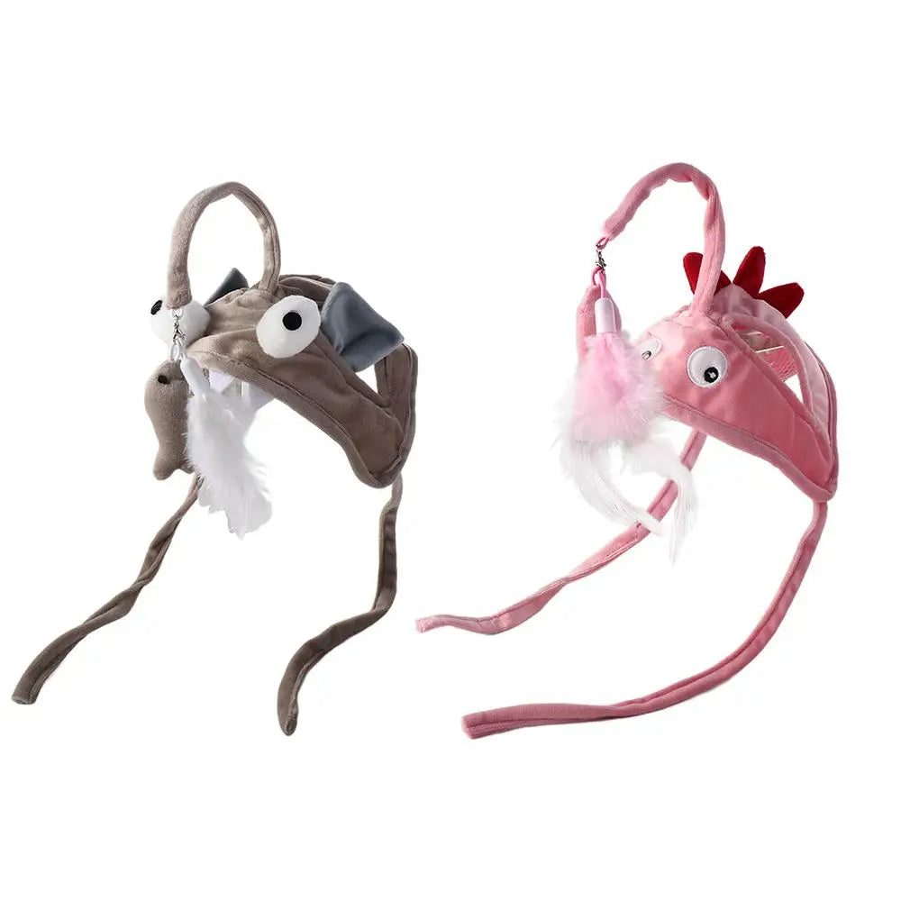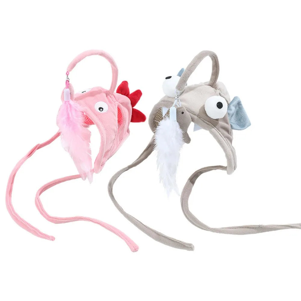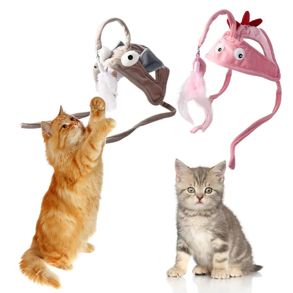 Cat Toys Cat Interactive Toys Kitten Fishing Headdress Hat Feathers Bait Fishing Head Covers