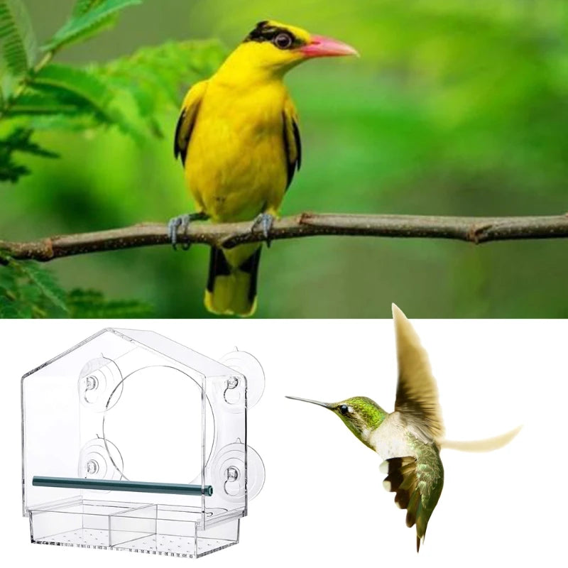 Clear Acrylic Bird Feeder Window Mount with Strong Suction Cup Seed Tray