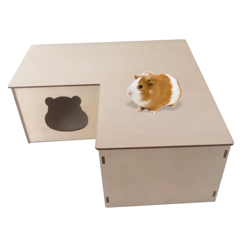 D0AD Hamster Wooden House with Detachable Roof Natural Hideout Cage Accessories