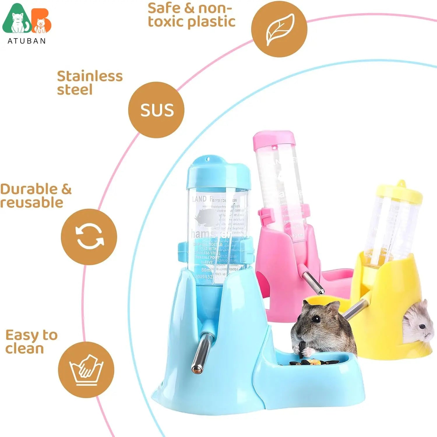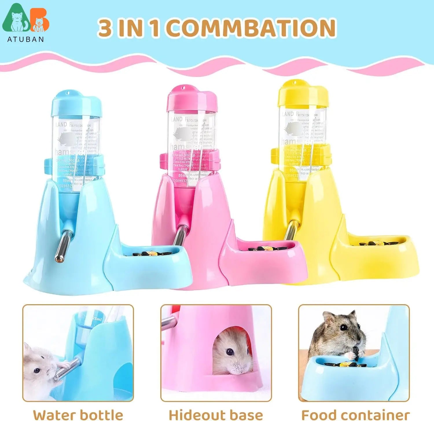 3 in 1 Hamster Water Bottle, Pet Drinking Bottle with Food Container Base