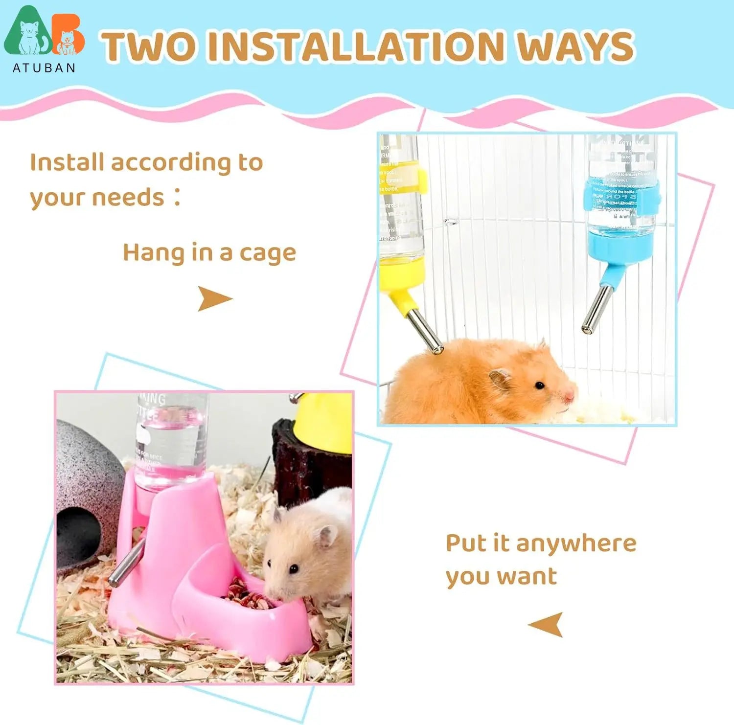 Hamster Pet Cage Water Bottle 80ml with Bracket, Waterproof Drop