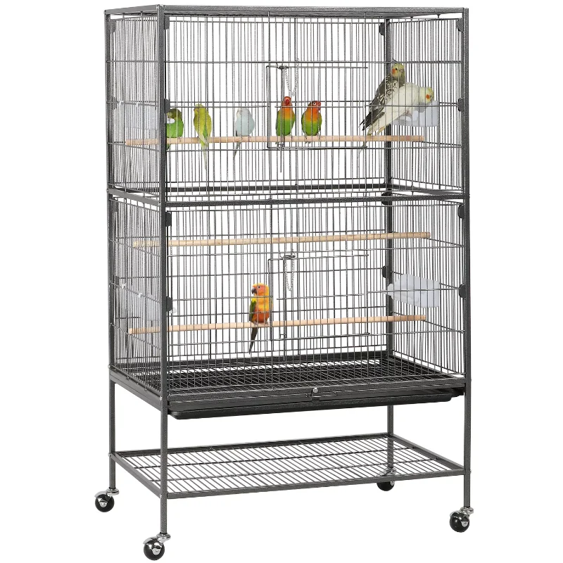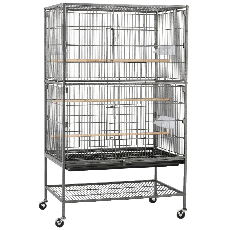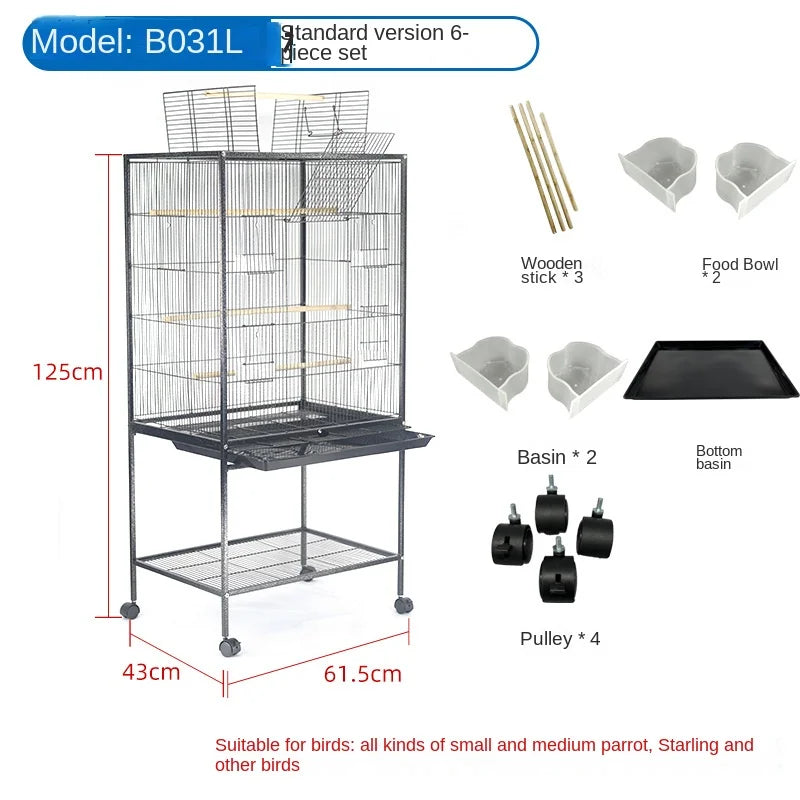 The Metal Large Rolling Bird Cage is a spacious and sturdy enclosure designed to provide a comfortable and secure habitat for pet birds. Made from durable metal, this cage ensures longevity and reliability. It features rolling casters for easy mobility, making it convenient to move around your home or space. With ample space for birds to perch, play, and spread their wings, this cage also includes multiple access doors for easy cleaning and interaction. It's an ideal choice for owners looking to provide a safe and enjoyable environment for their feathered friends.