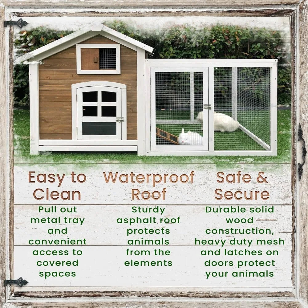 The Outdoor Wooden Rabbit Cage provides a secure and spacious habitat for rabbits in outdoor settings. Crafted from durable wood, it features sturdy wire mesh panels for ventilation and protection from predators. Designed with ample room for rabbits to hop and play, it includes accessible doors for easy cleaning and interaction. Ideal for promoting natural behaviors and ensuring comfort, this cage offers a safe and sheltered environment for your pet rabbits to thrive outdoors.