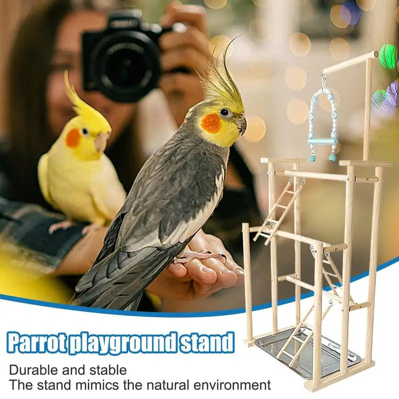 Parrot Stand Playground Wooden Play Gym Stand Exercise Toy