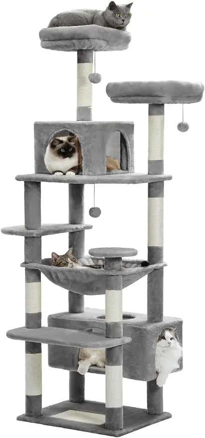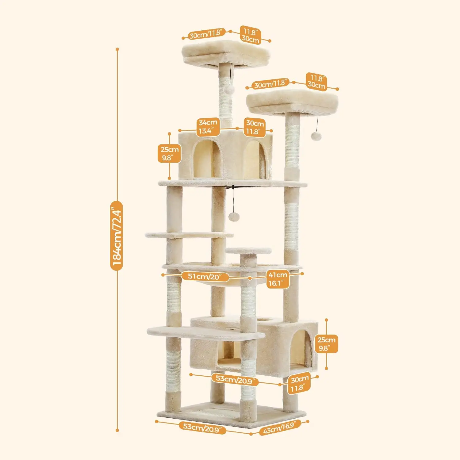- 72" Tall, Endless Climbing Fun: With the total height of 72" in 8-level structure, the super large cat tree is perfect for 4-5 big cats who love climbing up and down together. The needs of scratching, climbing, sleeping and exercising can also be fully satisfied! Especially the unique rectangle super large cat condo and wide hammock are much larger than normal ones and perfect for cats resting together.