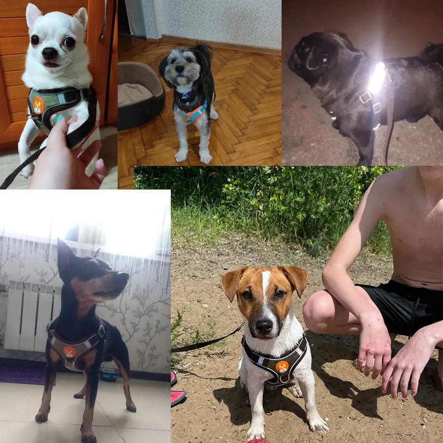 Introducing our reflective, adjustable dog harness and leash set - the perfect combination of safety and style for your furry companion! Are you tired of struggling with flimsy, uncomfortable harnesses and leashes that offer little visibility during nighttime walks? Look no further! Our reflective, adjustable dog harness and leash set is designed to ensure the safety and comfort of your beloved pet. The harness is made with high-quality, durable materials that are both lightweight and breathable, providing maximum comfort for your dog. The adjustable straps allow for a customized fit, ensuring a snug and secure hold without restricting movement. But that's not all - the harness and leash are equipped with reflective strips, making your dog visible to drivers and pedestrians during low-light conditions. This enhanced visibility greatly reduces the risk of accidents and provides peace of mind during evening walks. The leash is also designed with a comfortable handle grip, giving you full control and a comfortable grip while walking your dog. The set comes in a variety of vibrant colors and stylish designs, allowing your dog to strut their stuff with confidence and flair. Whether you're walking in the park, hiking, or simply strolling around the neighborhood, our reflective, adjustable dog harness and leash set ensures your dog's safety while adding a touch of style. Invest in our set today and experience the convenience and peace of mind it brings to your daily walks. Say goodbye to dull and unsafe walks and hello to a fashionable and secure walking experience. Don't compromise on style or safety for your furry friend. Get your reflective, adjustable dog harness and leash set now and make every walk a safe and stylish adventure!