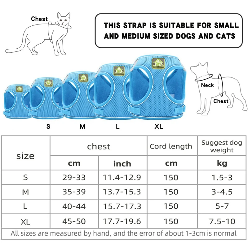 Discover our Reflective Puppy Cat Harness Vest with Walking Leash. This adjustable harness ensures comfort and safety for your pet during walks, featuring reflective materials for added visibility.