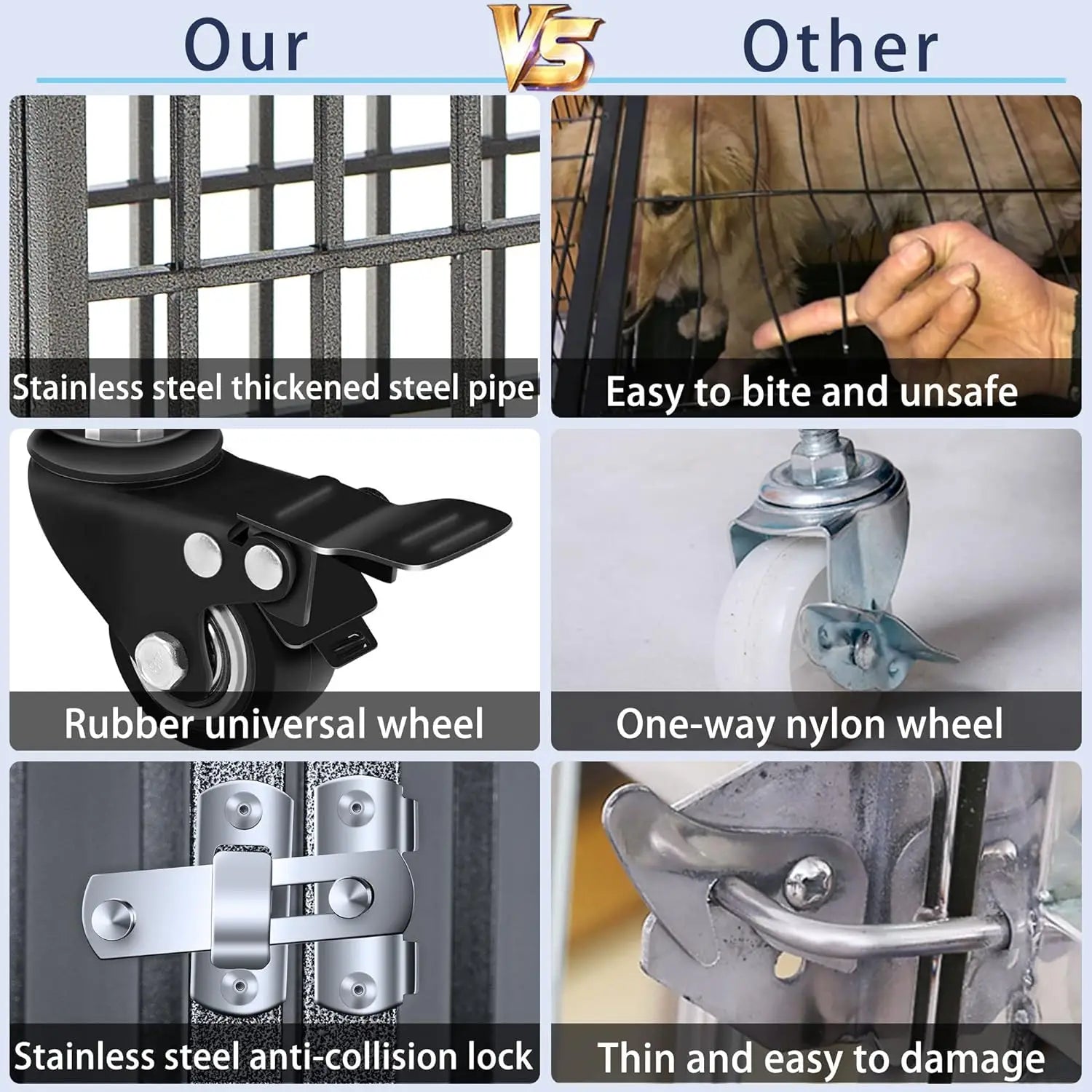 The SMONTER Heavy Duty Dog Cage is a robust and secure enclosure designed for larger dog breeds or pets that require extra durability and space. Constructed from strong steel, this cage features sturdy bars and a reinforced frame to withstand wear and tear. It includes multiple doors with secure latches for easy access and safety, ensuring your pet remains secure while allowing for convenient cleaning and interaction. Ideal for both indoor and outdoor use, the SMONTER Heavy Duty Dog Cage provides a safe and comfortable environment for your pet, offering peace of mind and longevity.