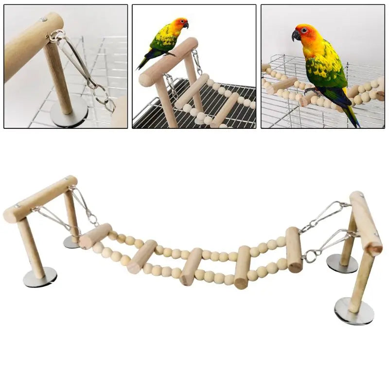 Wooden Bird Perches Stand Toys Parrot Swing Climbing Ladder