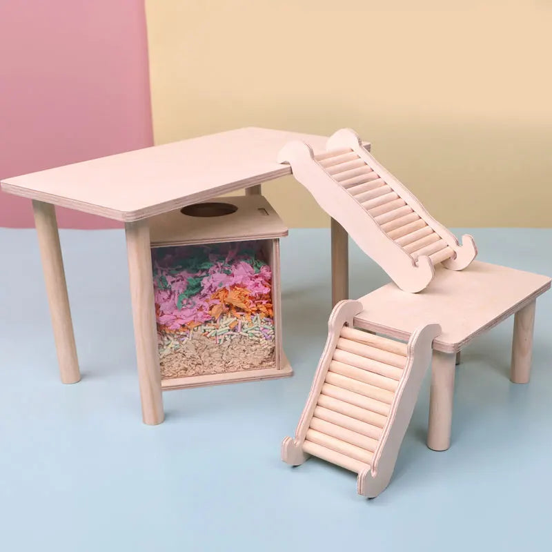 Wooden Hamster Under-ground Hiding Tunnel w/ Climbing Ladder